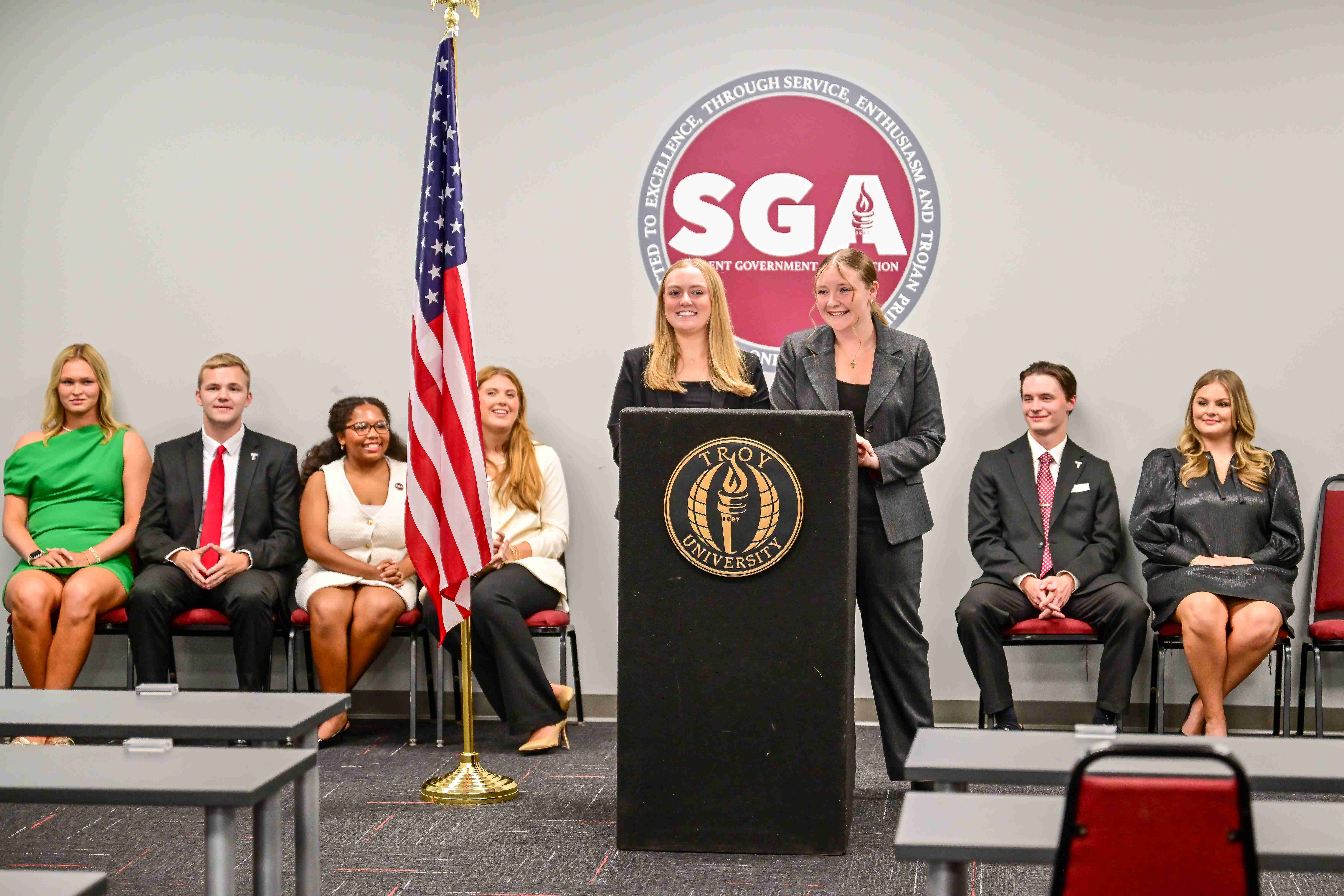 SGA Motto: "As representatives of Troy University, we commit to excellence in leadership through service, enthusiasm, and Trojan Pride!"